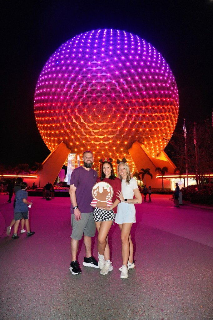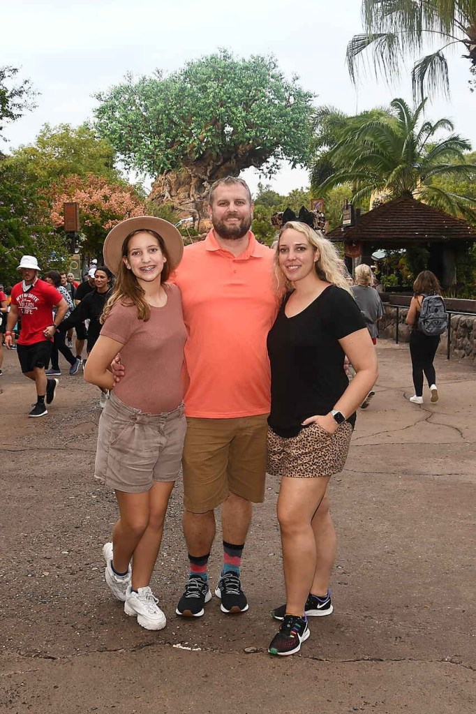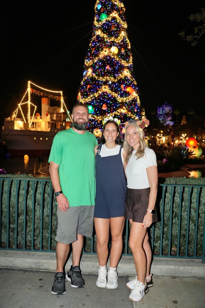 For Goofy, Anniston wore blue DSG shorts she already had, and we ordered an orange top and Goofy ears from Amazon. I wore a black Vuori top, red checkered shorts from Amazon and Minnie ears we already had. Nick wore clothes from his closet.